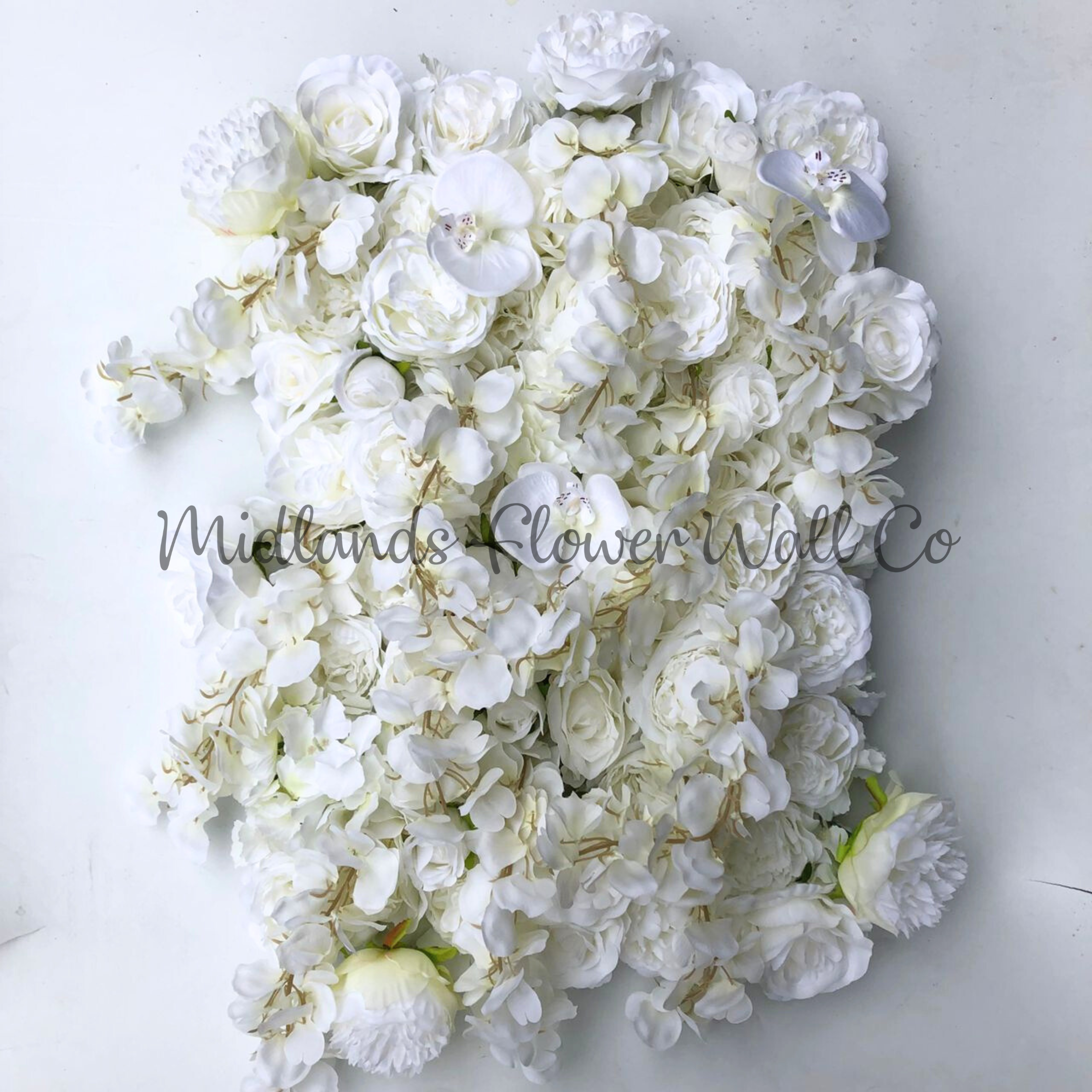 - Classic greenery flower wall with white florals, a bridal favourite and a timeless combination that looks great all year round. Product information: Our 'Marilyn' greenery flower wall panels are made to order, fully customisable and priced per 40cmx60cm panel, so you can build a professional event backdrop or a luxury interior feature in any style or size (minimum 6 panels).…