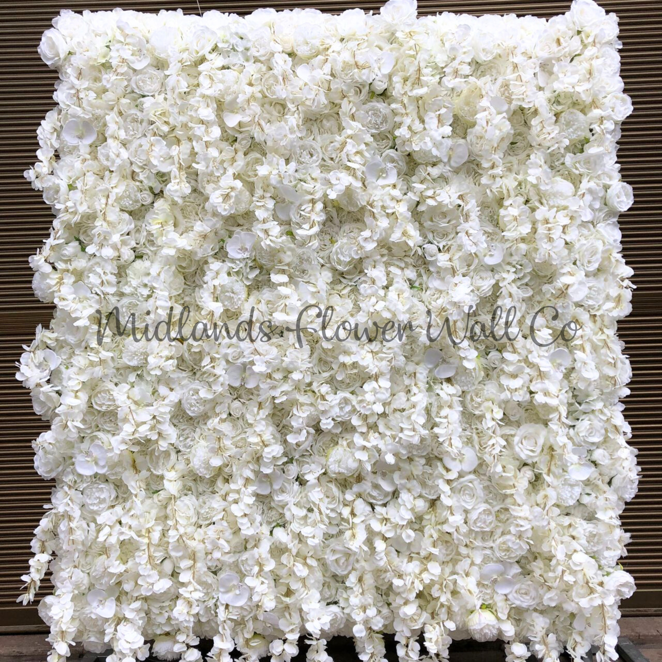 - A cloud-like white rose backdrop on a blanket of white hydrangeas. Product information: Our 'Cecilia' rose backdrop is made to order in three lightweight, fabric backed sections of 0.8m x 2.4m to create a 2.4m x 2.4m floral backdrop that is quick and easy to install. For a complete flower wall solution, add a telescopic pole frame - the professionals…