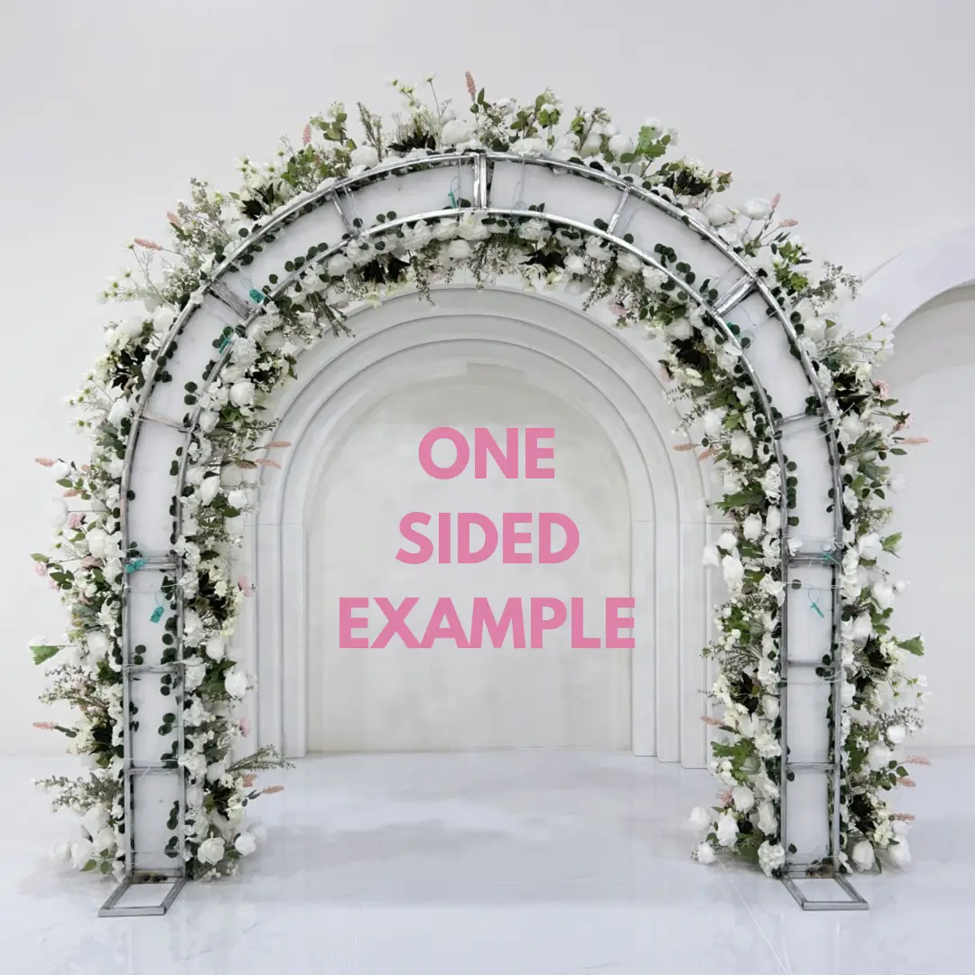 Flower Arch Maintenance: Suitable for indoor and outdoor use – out of extensive, direct sunlight to protect the arch against colour fading. The structure must be sufficiently secured and/or weighted when used outdoors and exposed to the elements. Foliage can be cleaned with a clean dry cloth or duster as often as required.