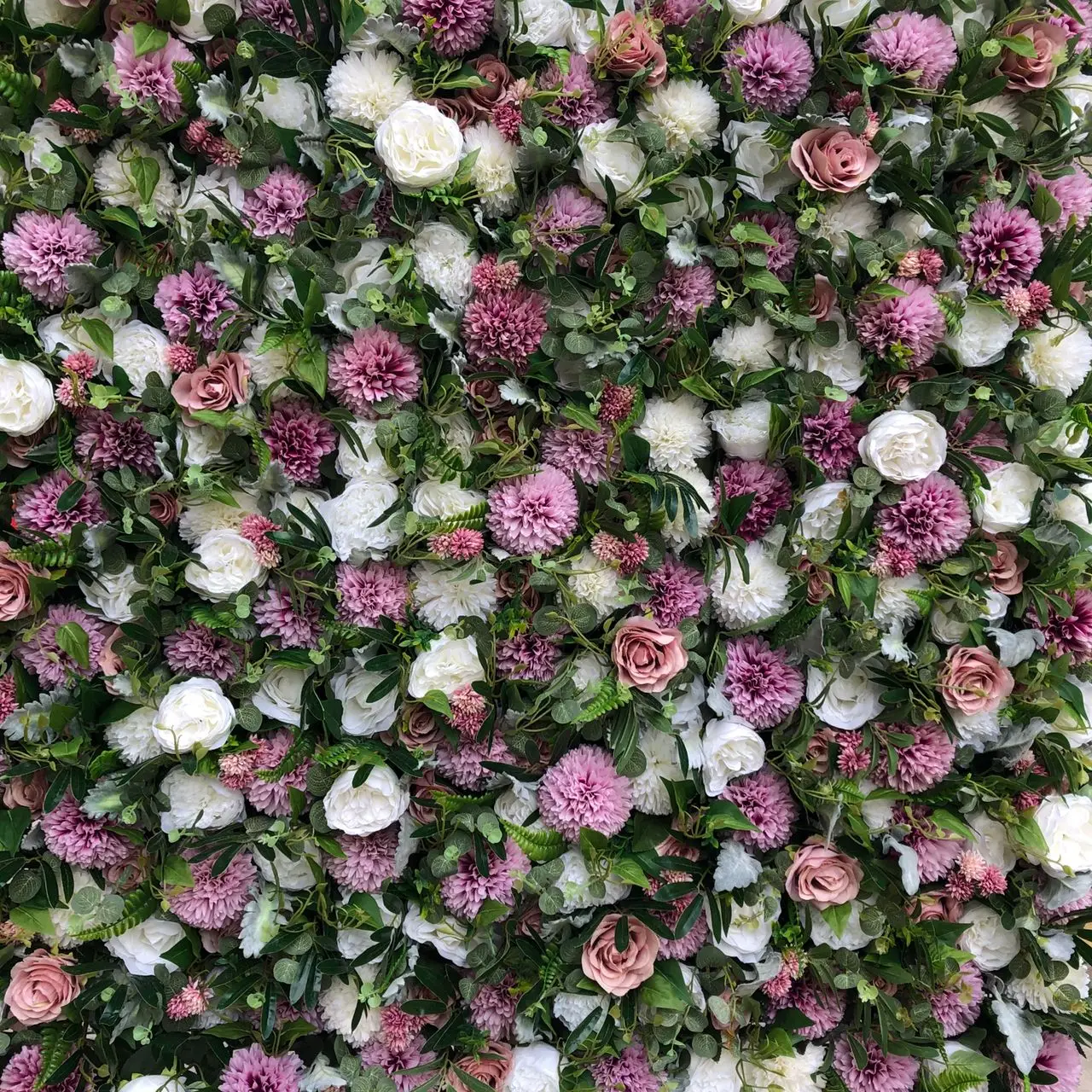Artificial flower wall panels that perfectly combine lush green foliage and fluffy florals.